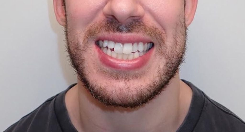 This patient came to BHO after having had orthodontics in the past and not achieving the smile and bite he always wanted. Even after previous treatment, he still had a narrow upper arch and the crowding of his teeth caused an anterior (front) crossbite.